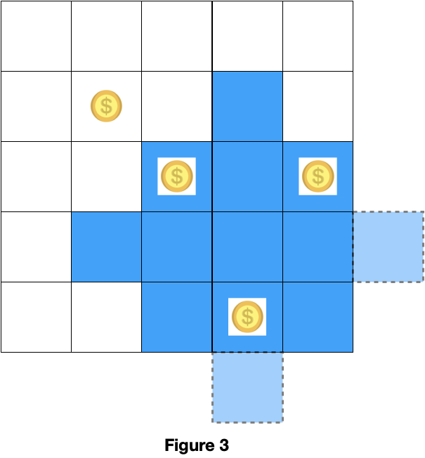이때 채굴에 드는 비용은 마름모 안의 격자 개수만큼 들어가며, 이는 로 계산될 수 있습니다. 금 한 개의 가격이 일 때, 손해를 보지 않으면서 채굴할 수 있는 가장 많은 금의 개수를 출력하는 코드를 작성해보세요. 단 한 개의 격자 안에는 최대 한 개의 금만 존재합니다