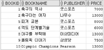 INSERT INTO Book VALUES(1, '축구의 역사', '굿스포츠', 7000);