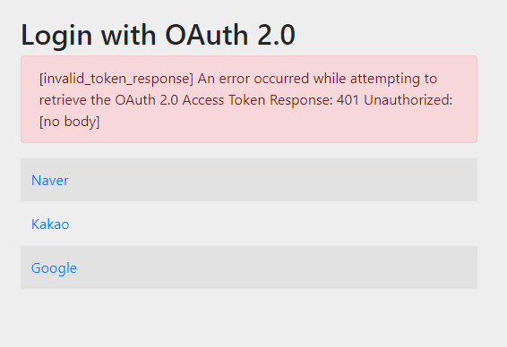 [invalid_token_response] An error occurred while attempting to retrieve the OAuth 2.0 Access Token Response: 401 Unauthorized: [no body]