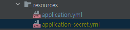 먼저 노출되면 안되는 정보를 관리할 application-secret.yml 파일을 만들어줍니다. 파일이름은 개발자 마음대로 만드시면 됩니다.