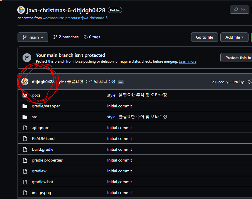 초기 설정을 방금 만든 브랜치에 푸쉬해줍니다.