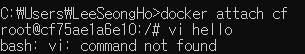 접근 후에 vi 명령어를 실행합니다. 당연하게도 vim 이 install 되어있지 않아 실행되지 않습니다.