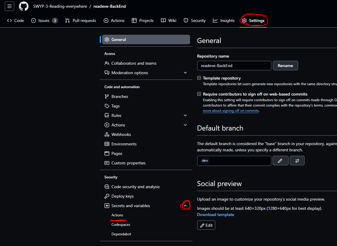 - 💡 Secrets & Actions 메뉴 선택: 왼쪽 사이드바에서 "Secrets & Actions"를 찾아 클릭합니다.