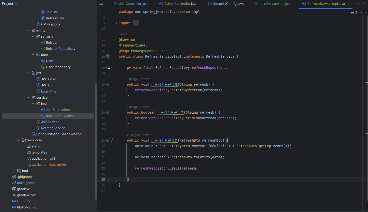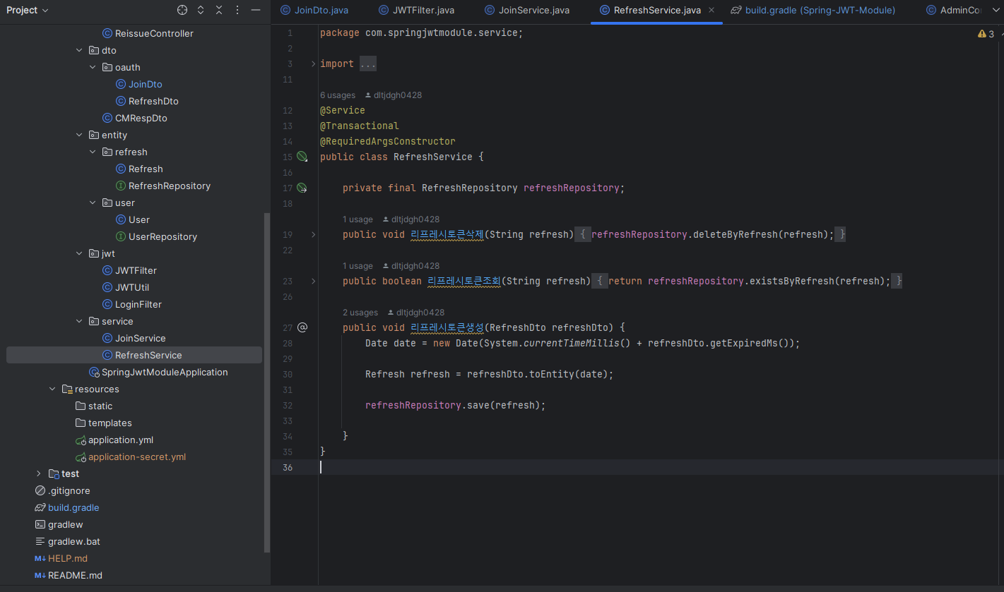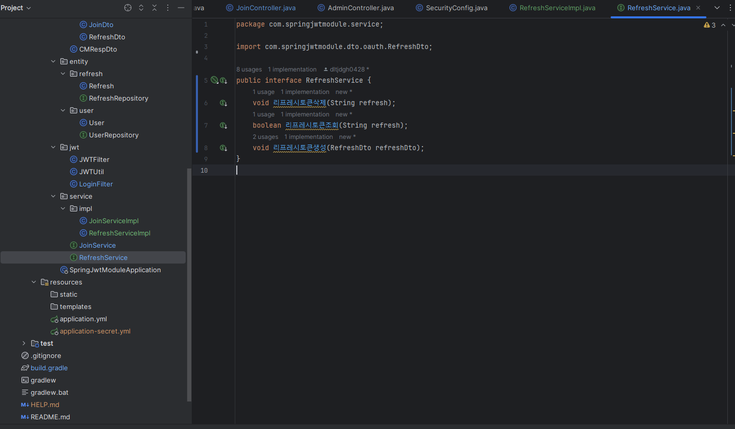 현재 진행 중이던 JWT 코드에 한번 적용해 보겠습니다.