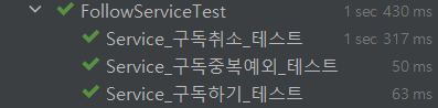 이외의 구독취소, 구독중복예외 테스트도 성공했습니다.