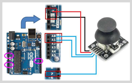 이후 조이스틱을 함께 연결합니다. 조이스틱의 회로도는 아래와 같습니다.